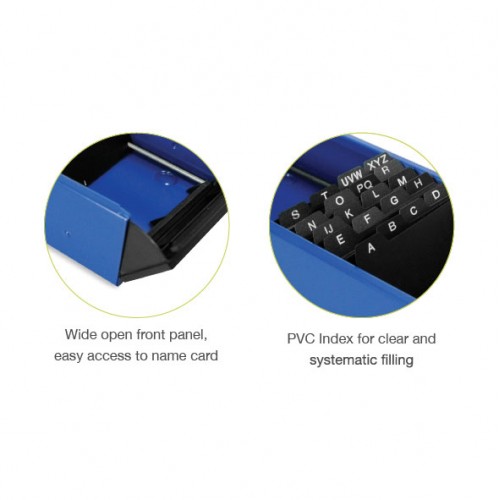 Wide open front panel, easy access to name card