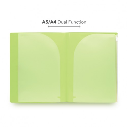 - Side loaded: Use 1 pocket for A5, 2 pockets for A4.