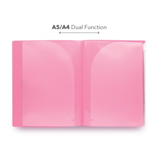 - Side loaded: Use 1 pocket for A5, 2 pockets for A4.